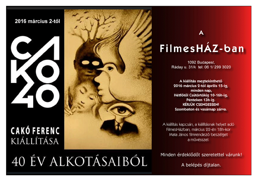 Köszönet Mata Jánosnak, aki motorja a FilmesHáz ilyen célú működtetésének, fáradságot nem kímélve szervezi a kiállításokat.