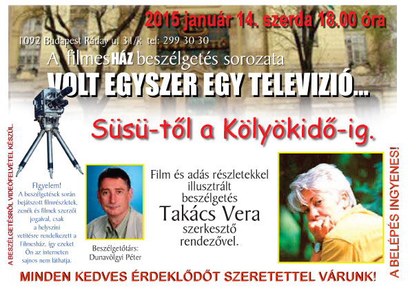 2015. első félévi programok a FilmesHázbanSüsü-től a Kölyökidő-ig – beszélgetés Takács Vera szerkesztő-rendezővel2015.01.14. 18:00
