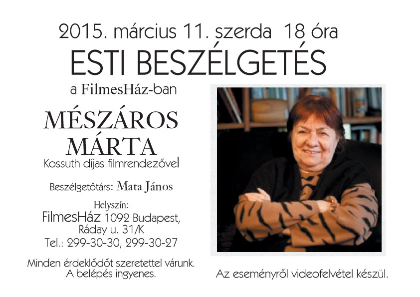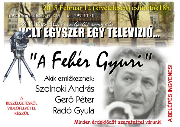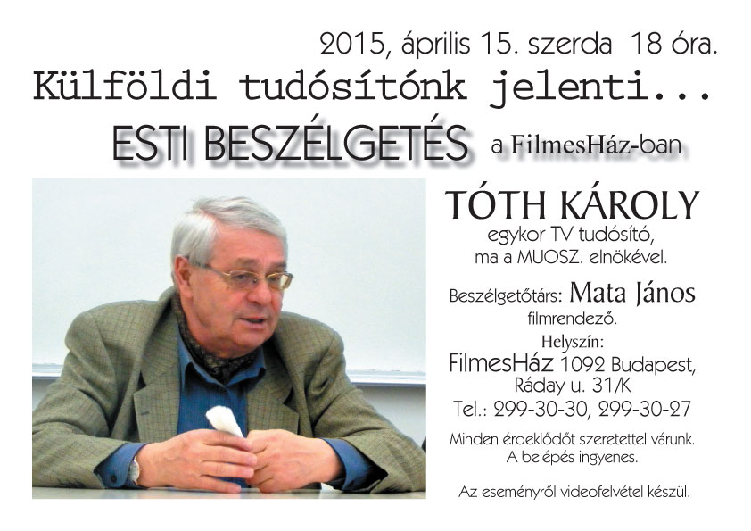 2015. első félévi programok a FilmesHázbanBeszélgetés Tóth Károllyal, egykori TV-tudósítóval, a MUOSZ elnökével2015.04.15. 18:00