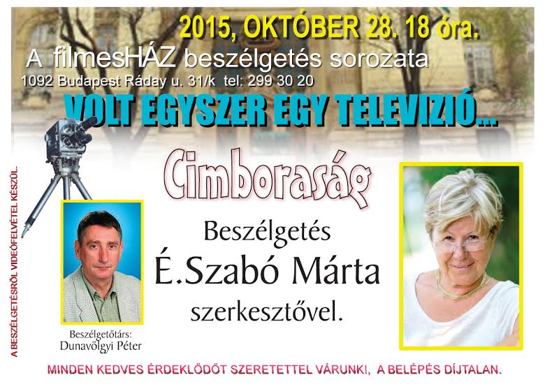 2015. második félévi programok a FilmesHázbanCimboraság; beszélgetés É. Szabó Mártával 2015.10.28. 18:00