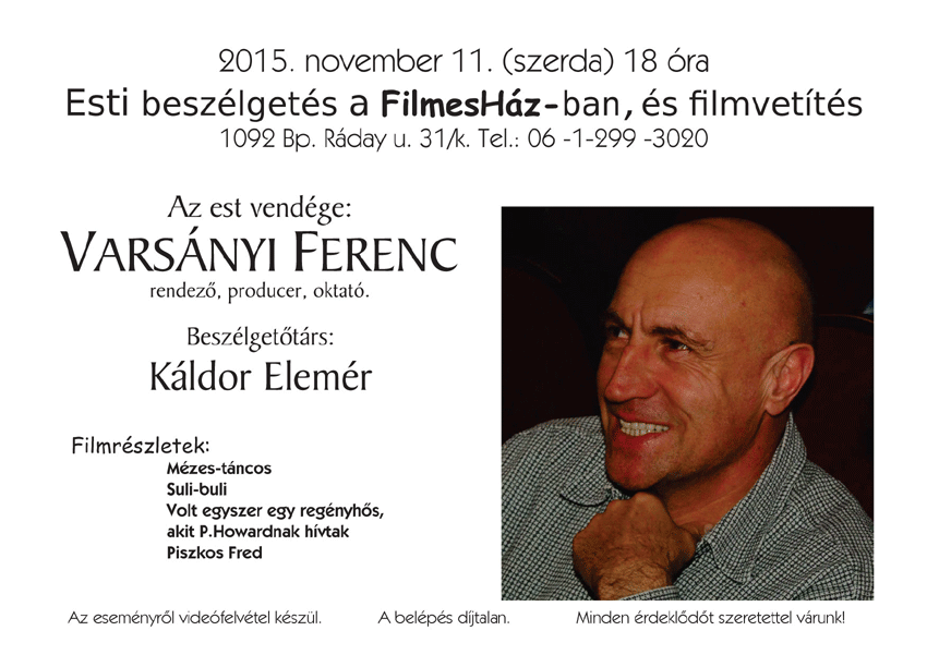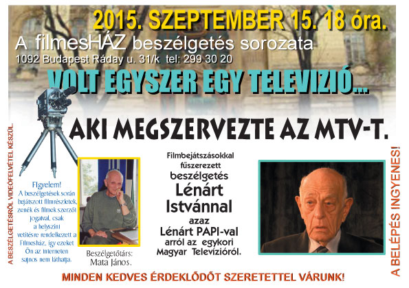 2015. második félévi programok a FilmesHázbanBeszélgetés Lénárt Istvánnal, Papival az egykori televízióról2015.09.15. 18:00