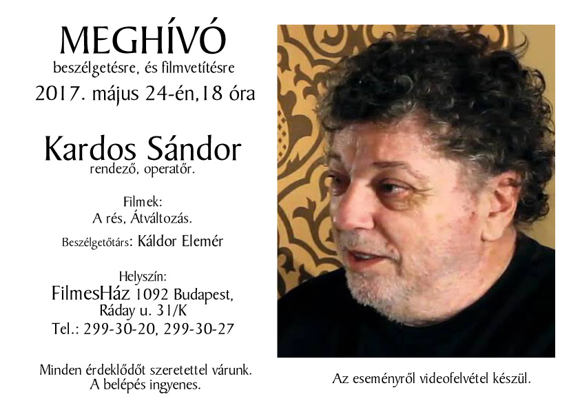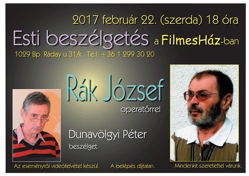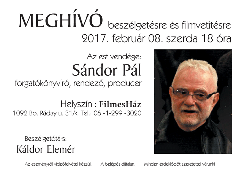 2017. első félévi programok a FilmesHázbanAz est vendége Sándor Pál forgatókönyvíró, rendező, producer2017.02.08. 18:00