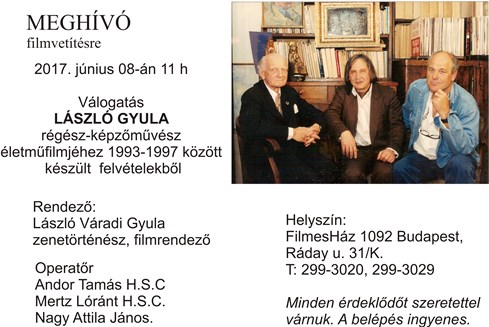 2017. első félévi programok a FilmesHázbanVálogatás László Gyula régész-képzőművész életműfilmjének felvételeiből2017.06.08. 11:00