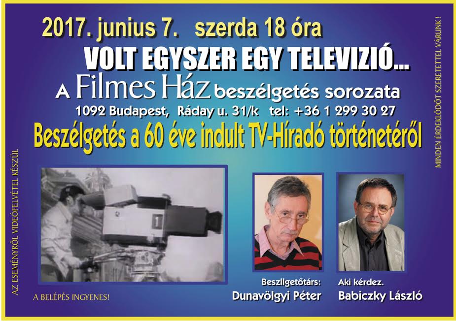 2017. első félévi programok a FilmesHázbanBeszélgetés a 60 éve indult TV-híradó történetéről2017.06.07. 18:00